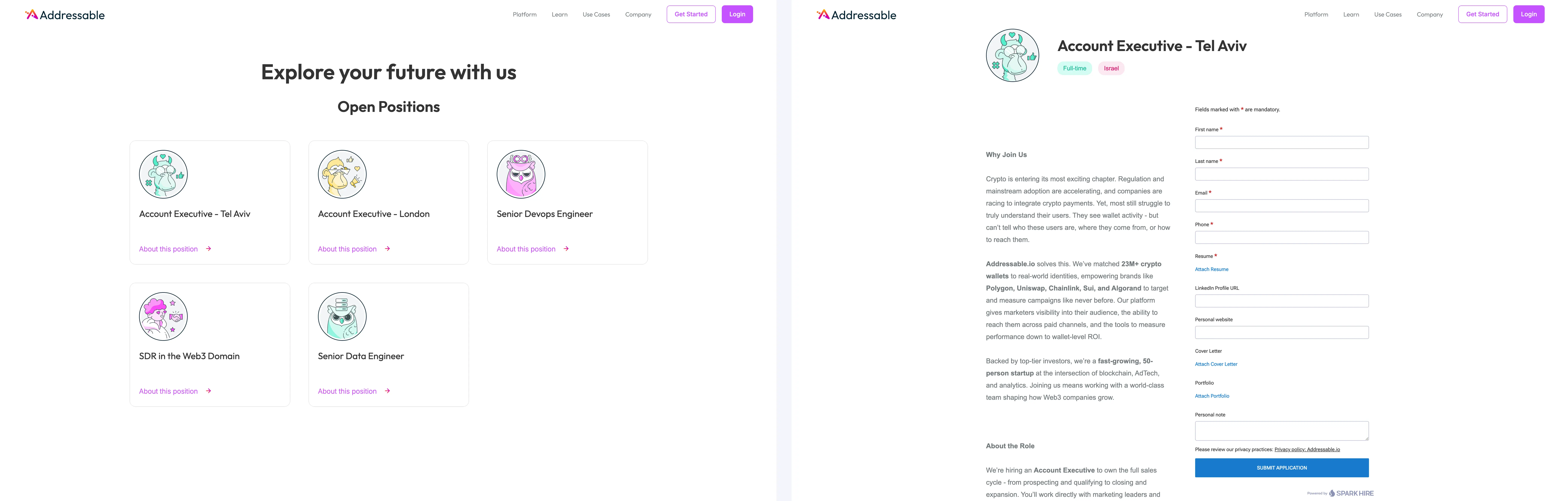 This integration gives companies the best of both worlds. Your Careers page stays up to date automatically, and you keep full creative control of its design. No compromises, no hacks, no mismatched styling.